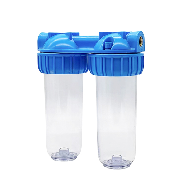 Whole House Dual Stage Water Filter Housing 10" Clear Standard 3/4" Brass Port Images |